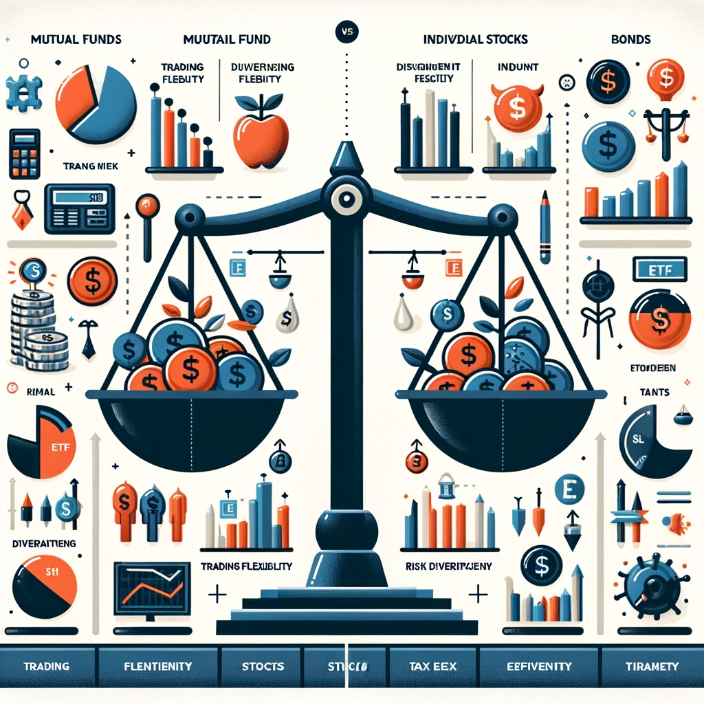 Investing in individual stocks allows for specific company targeting but comes with higher risk due to lack of diversification. ETFs, on the other hand, offer a diversified portfolio in a single transaction, reducing the risk associated with individual stock investments.